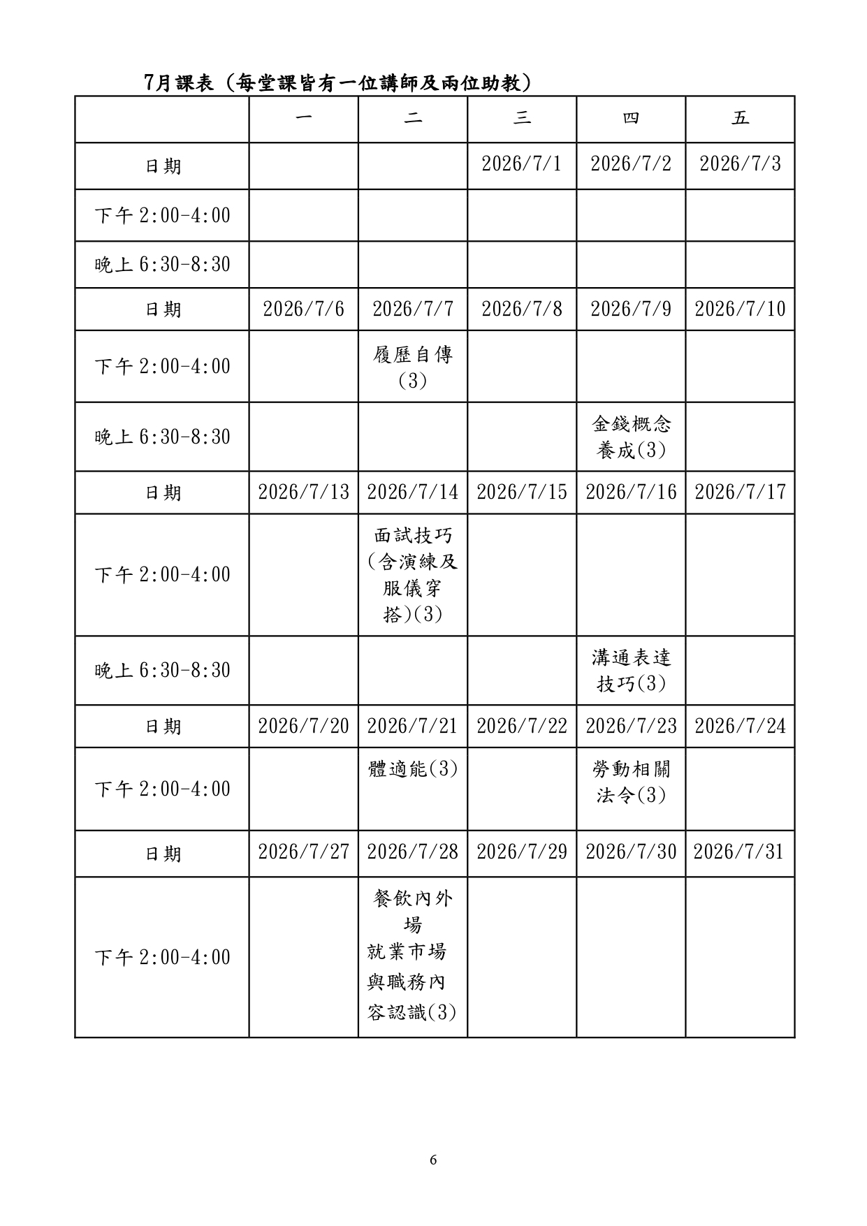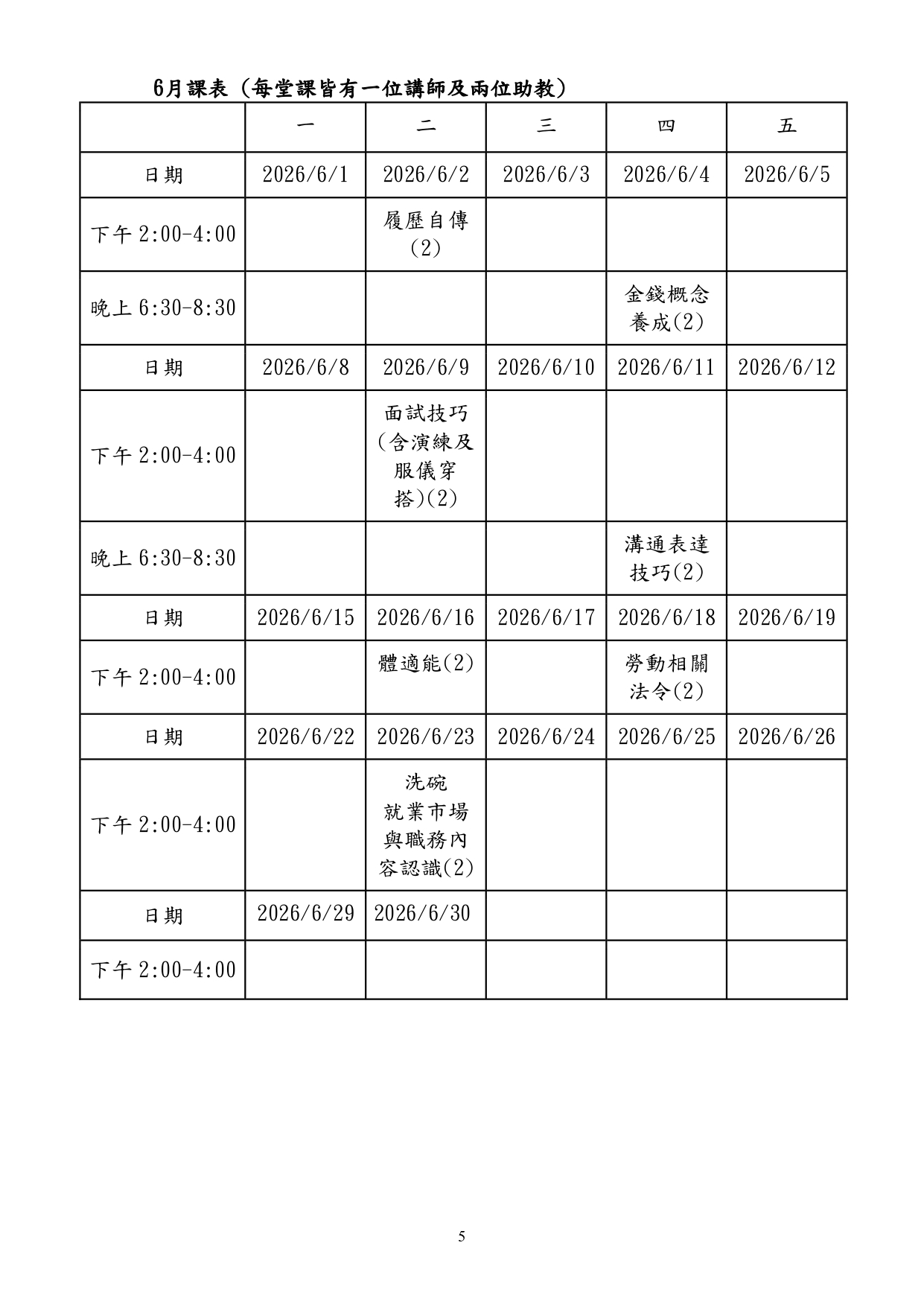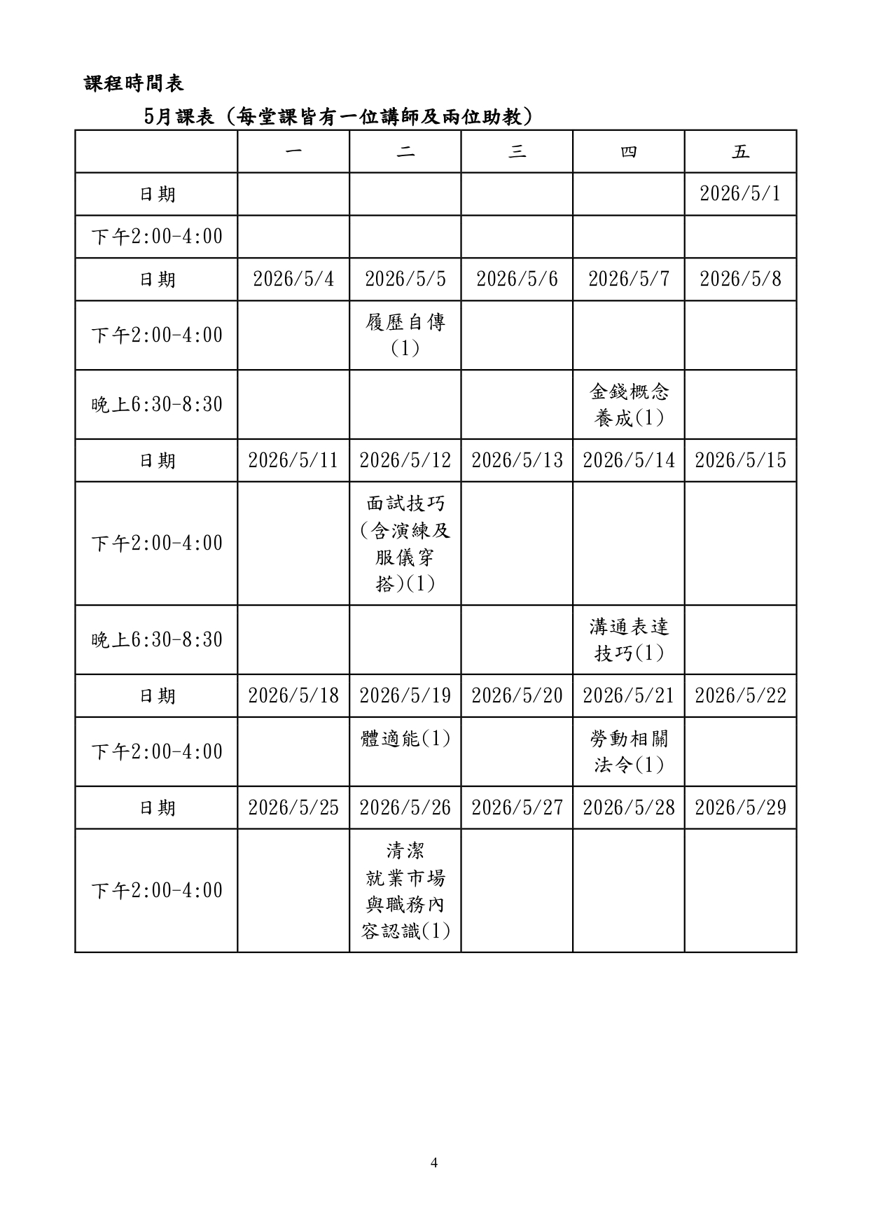 課程地點:臺北市勞動力重建運用處5樓綜合教室(臺北市萬華區艋舺大道101號5樓)