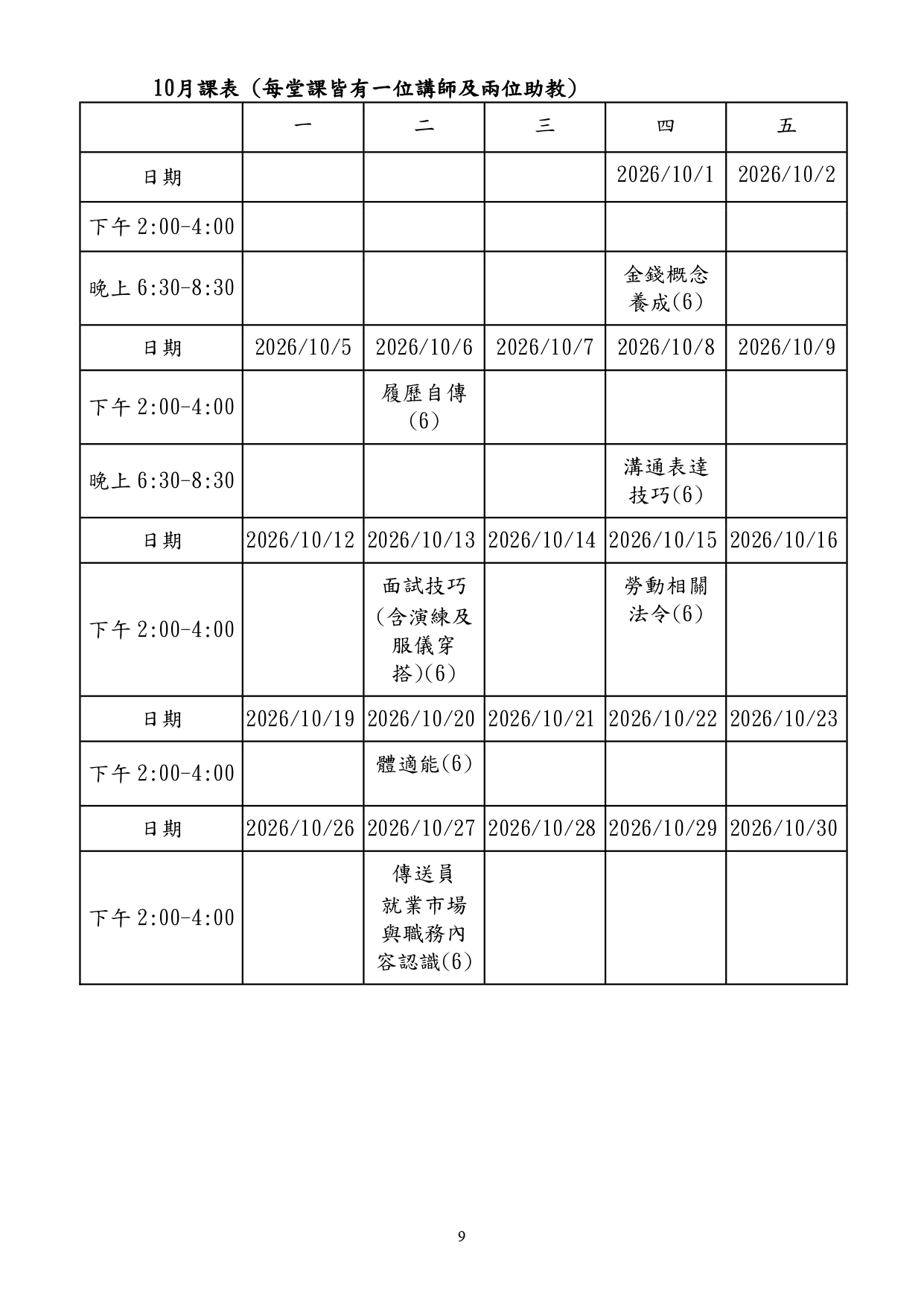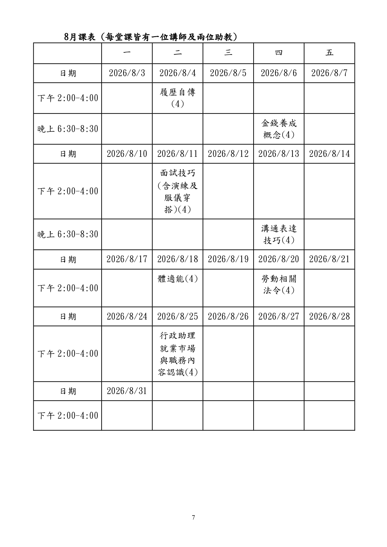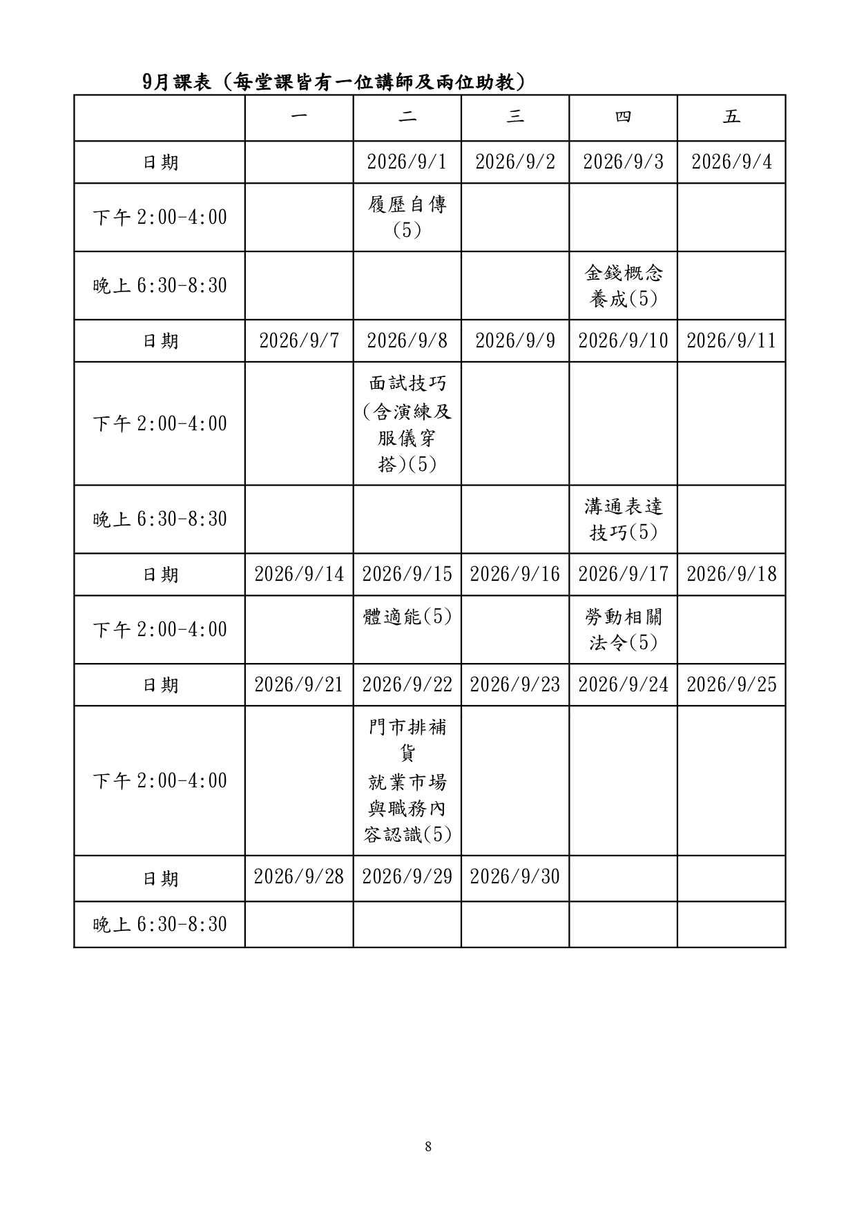 課程地點:臺北市勞動力重建運用處5樓綜合教室(臺北市萬華區艋舺大道101號5樓)