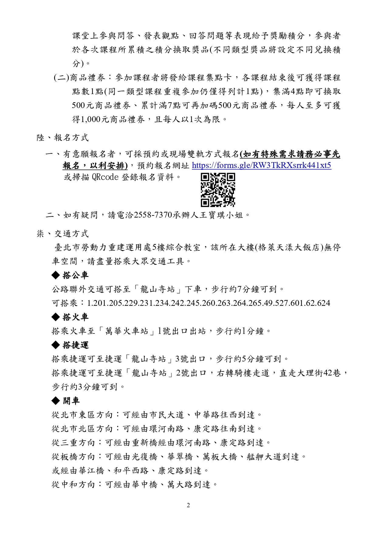 如有疑問,請電洽2558-7370承辦人王寶琪小姐。