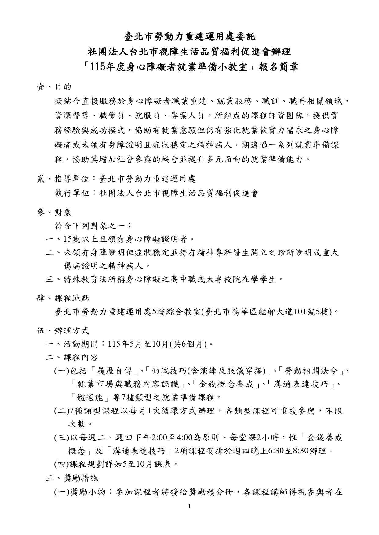 「115年度身心障礙者就業準備小教室」報名簡章